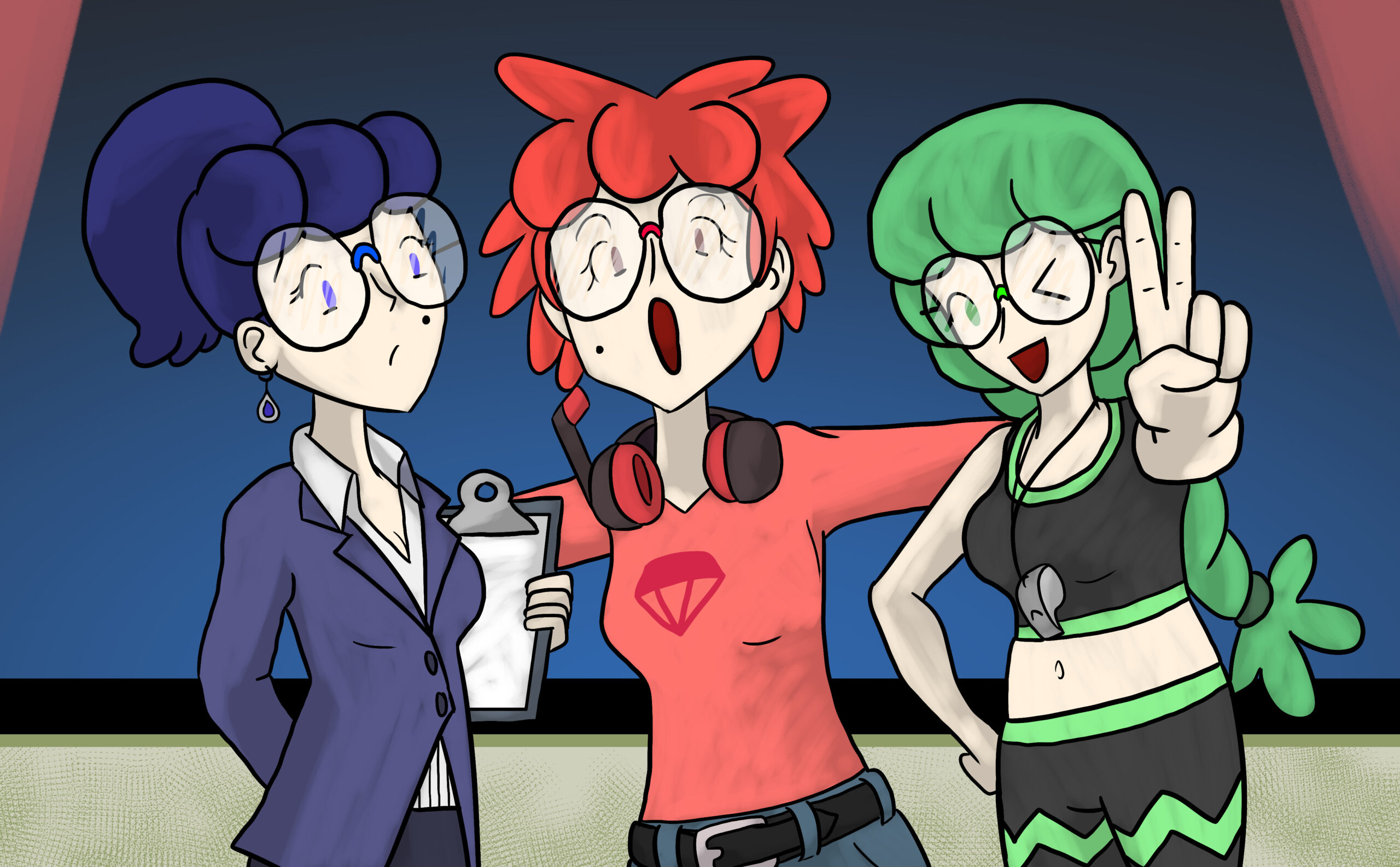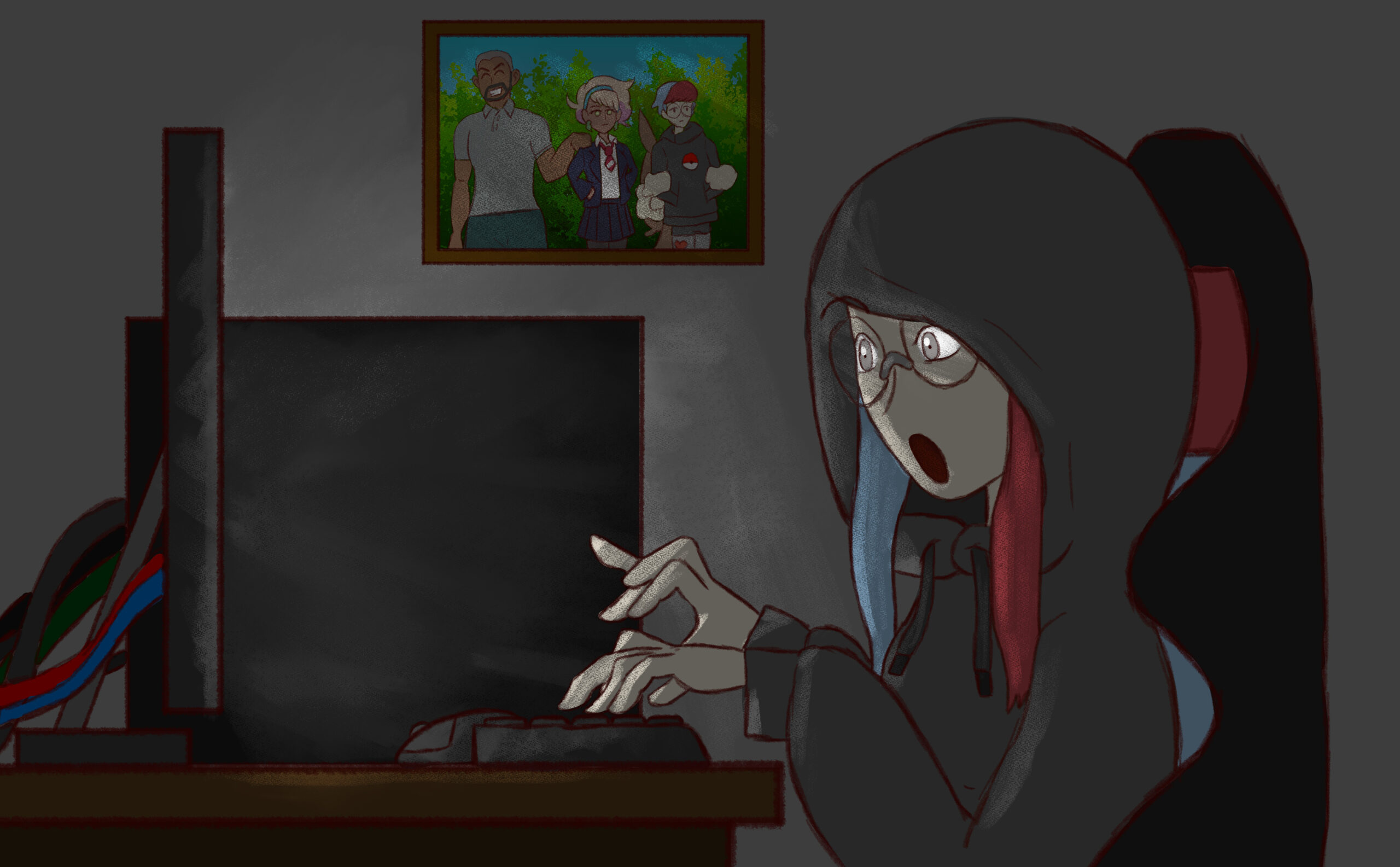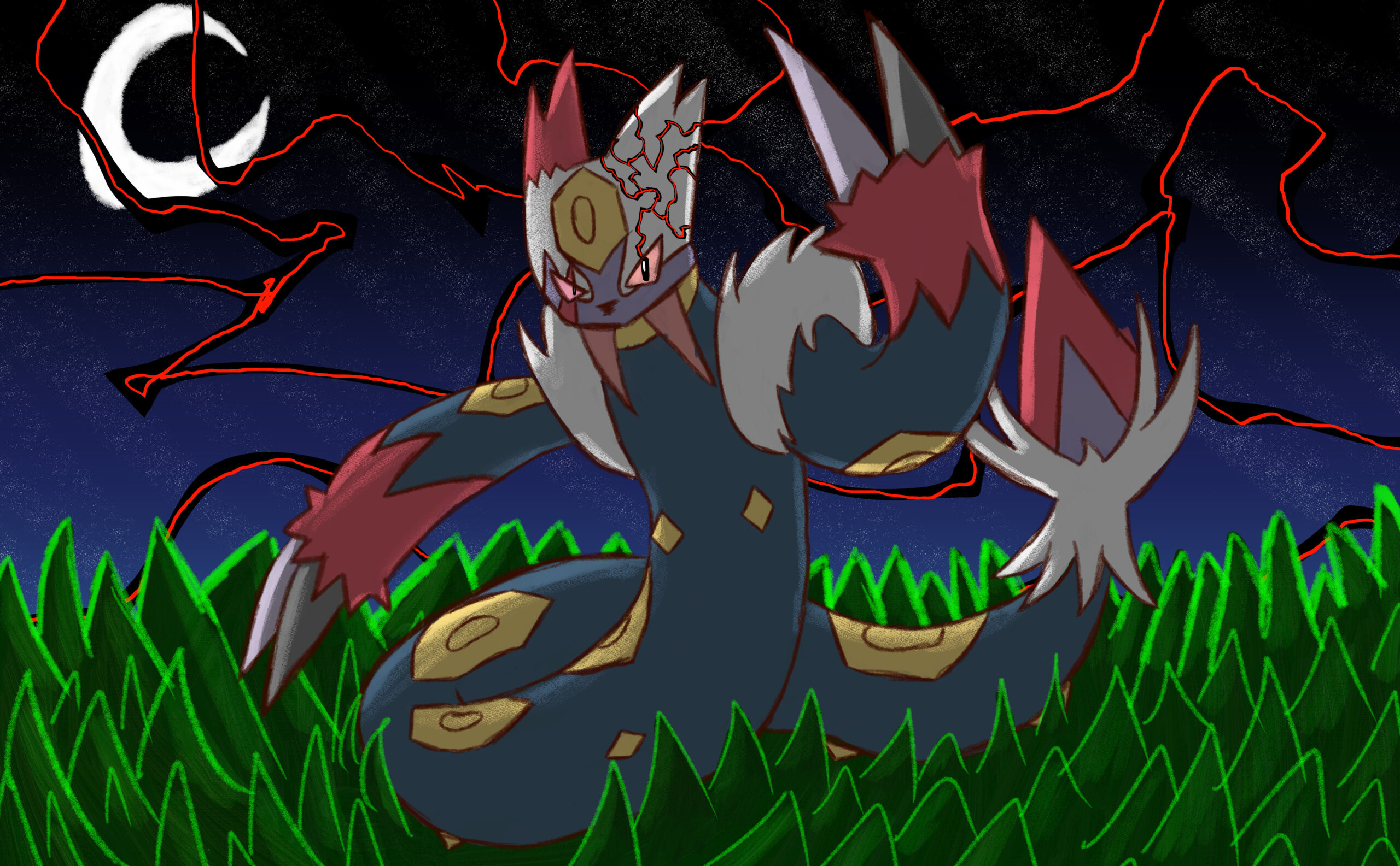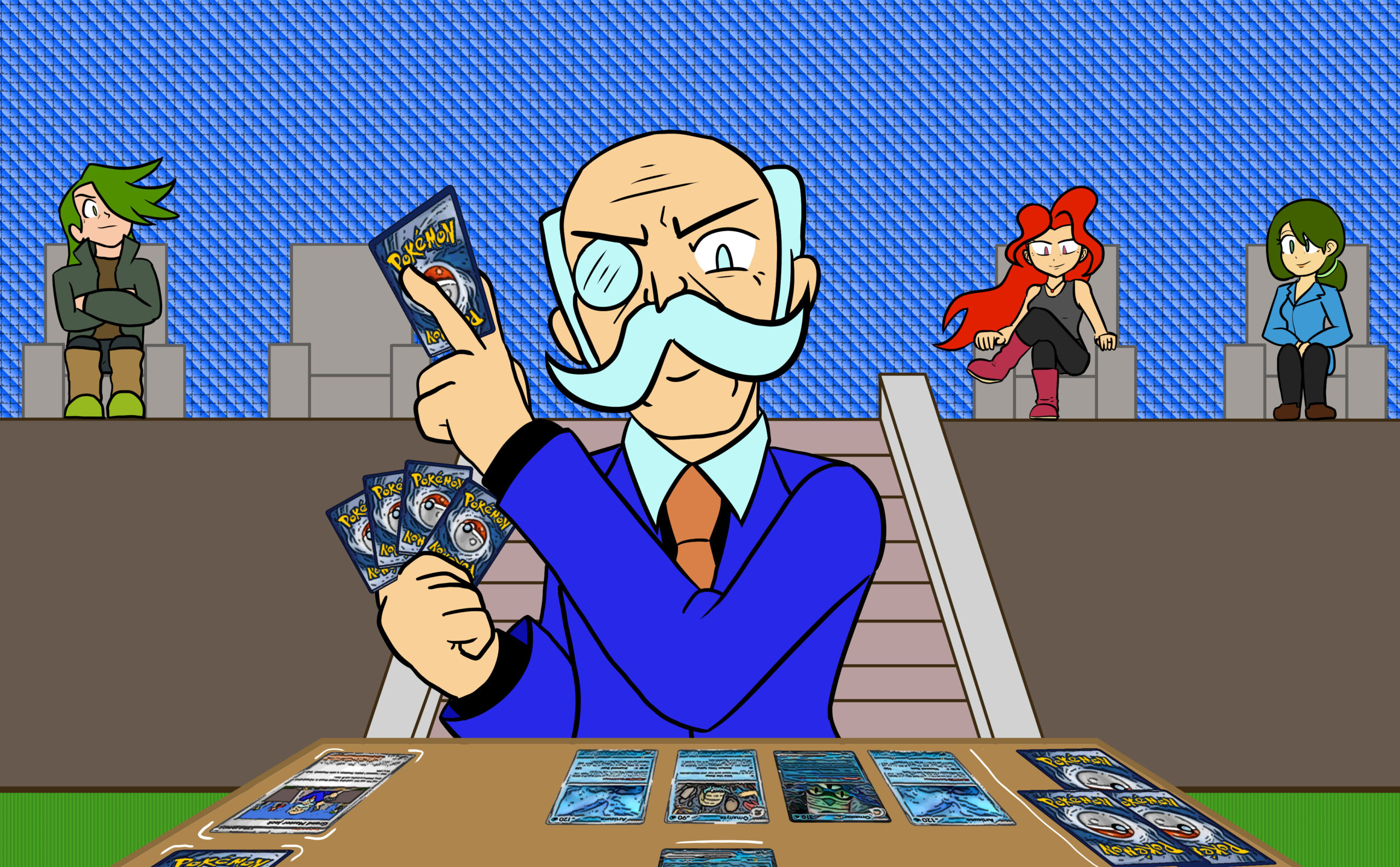 This is a set of art I did for PMJ’s Custom Pokémon set, Scarlet & Violet — Final Stand. It takes place in the future where the world is faced with Dark and Light Pokémon. I was tasked with doing the art for its supporters and custom Dark and Light Pokémon evolutions, so many of the characters are aged up accordingly (about 10-20 years).