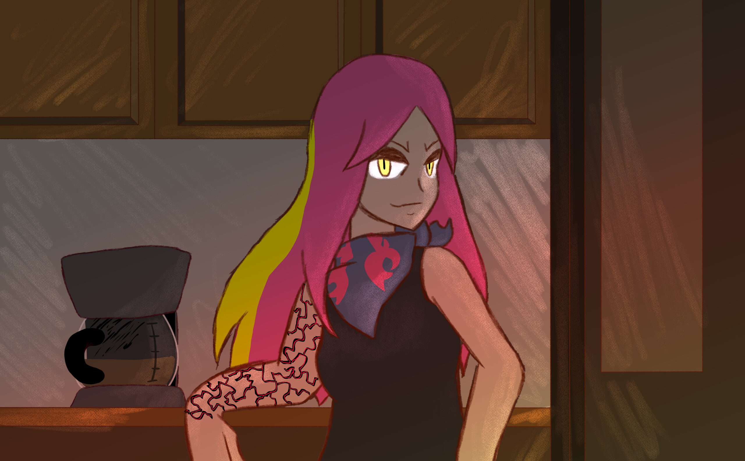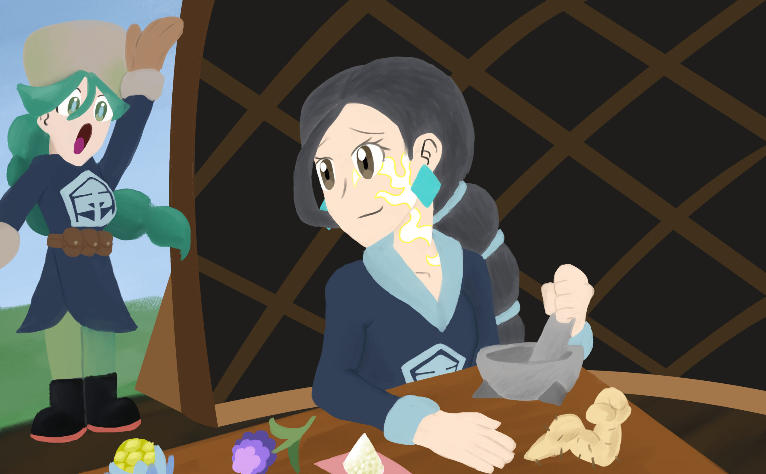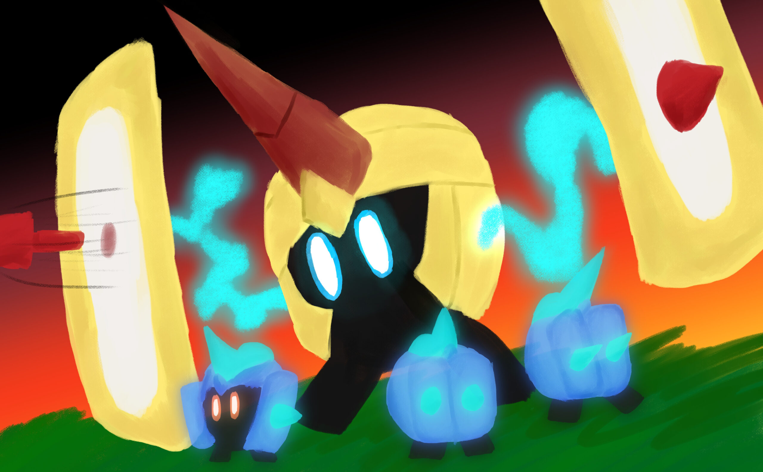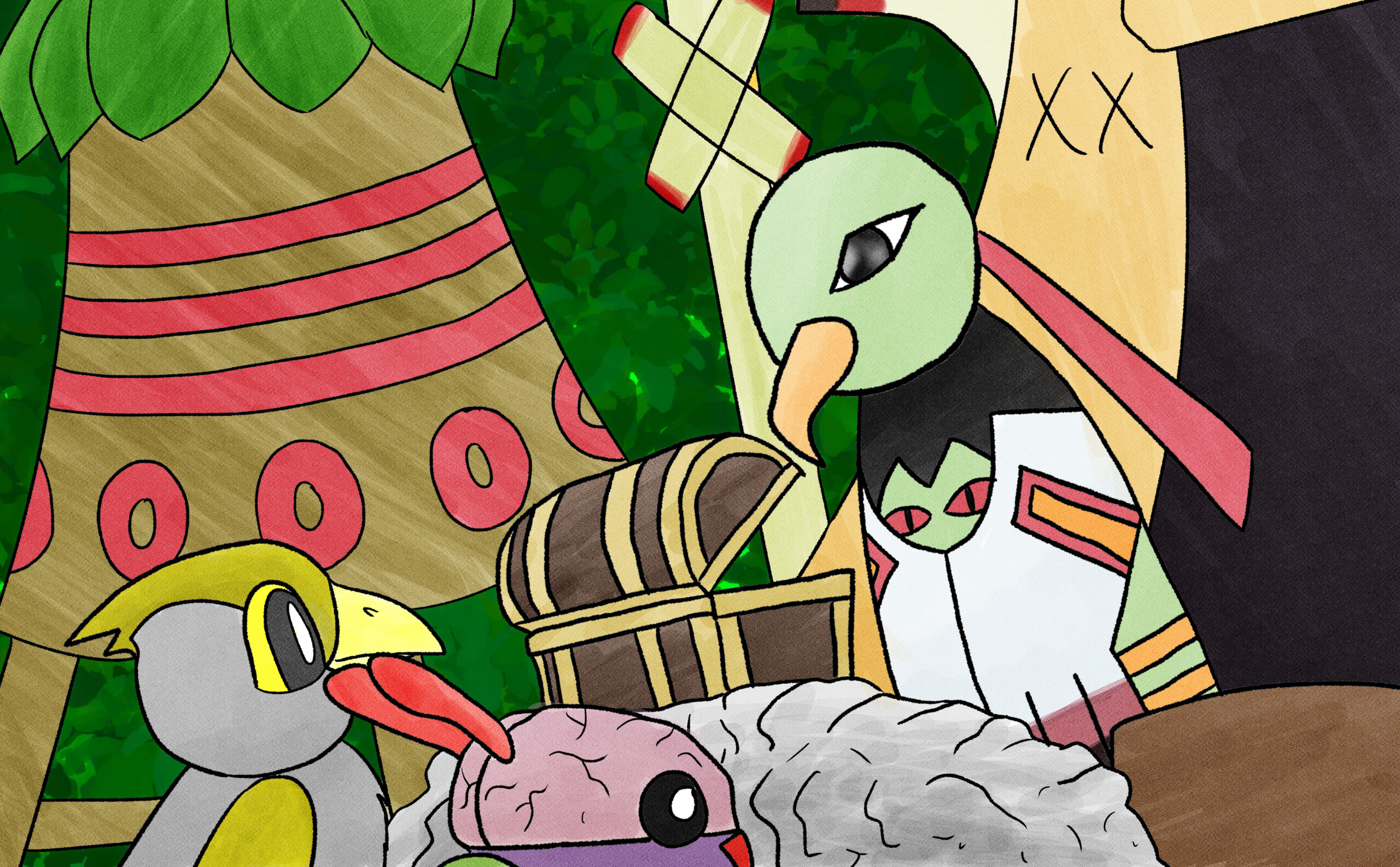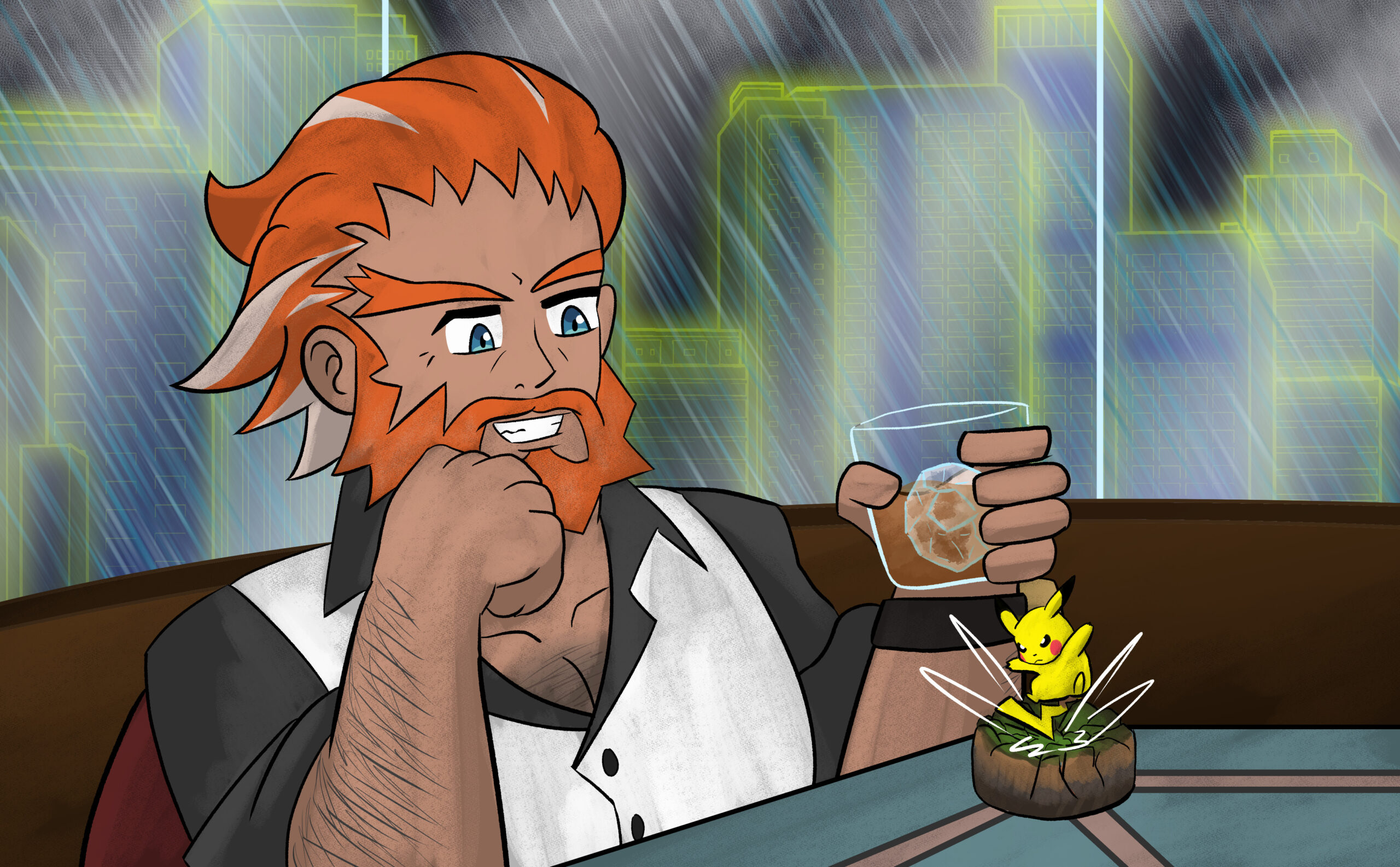 This is a set of art I did for PMJ’s Custom Pokémon set, Scarlet & Violet — Final Stand. It takes place in the future where the world is faced with Dark and Light Pokémon. I was tasked with doing the art for its supporters and custom Dark and Light Pokémon evolutions, so many of the characters are aged up accordingly (about 10-20 years).